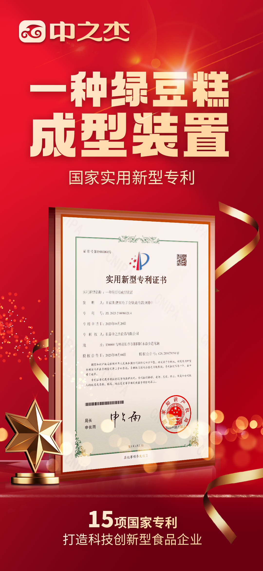 中之杰再獲兩項(xiàng)專利認(rèn)證,打造科技創(chuàng)新型食品